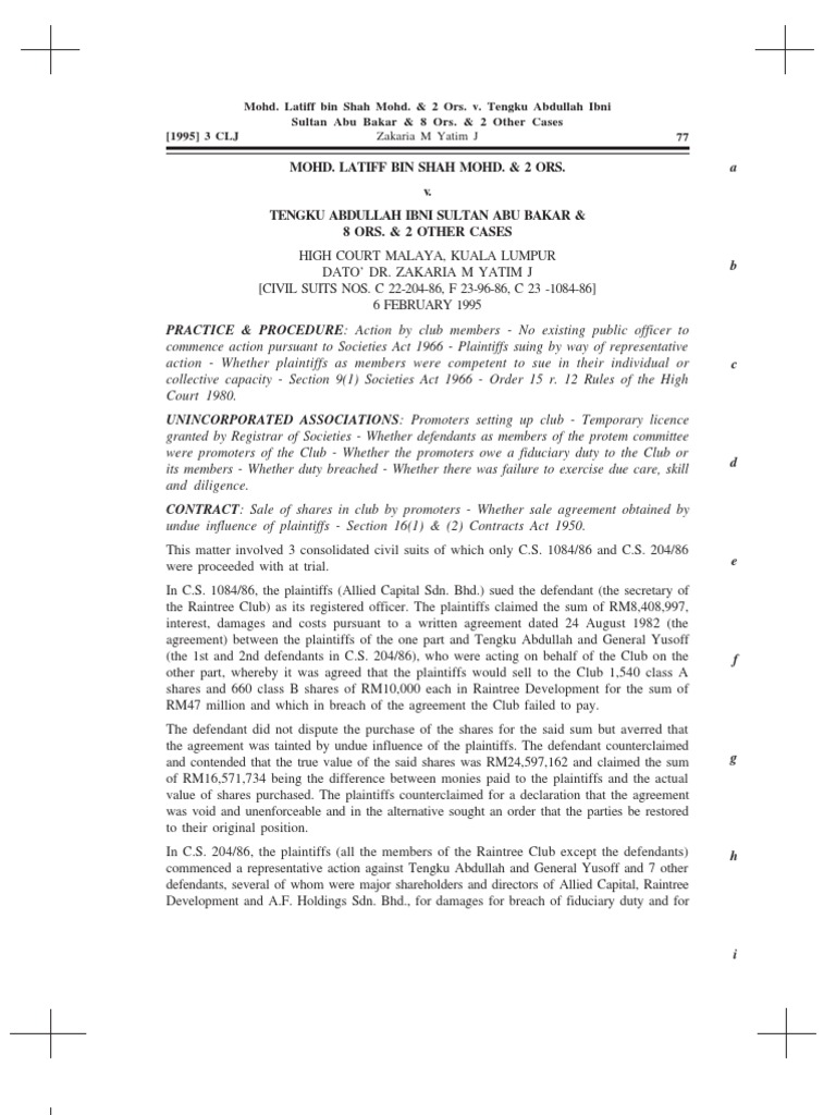 Allied Capital Sdn Bhd V Mohamed Latiff Bin Judgment Law Judge from imgv2-2-f.scribdassets.com It has been recognised that the section does not differ from the english law upon the subject of undue influence. Duli yang teramat mulia tengku abdullah ibni sultan ahmad shah (born 1959 in pekan he is the fourth child of sultan ahmad shah and tengku ampuan afzan. Tengku abdullah umum akan letak jawatan presiden fam. According to the case of southern bank bhd v abdul raof bin rakinan, the first defendant owed money to the plaintiff under overdraf facility. His eldest sibling is tengku norizan bakar — tuan haji norizan bakar personal information full name norizan bin bakar date of birth … Tunku abdul rahman putra alhaj ibni almarhum sultan abdul hamid halim shah. That controlling a person with low mental health capacity is undue influence that the presumption of undue influence can be rebutted via 1. 3 singapore has the application of english law act (cap 7a), in particular, ss 4 41 1996 1 mlj 481 c.a.