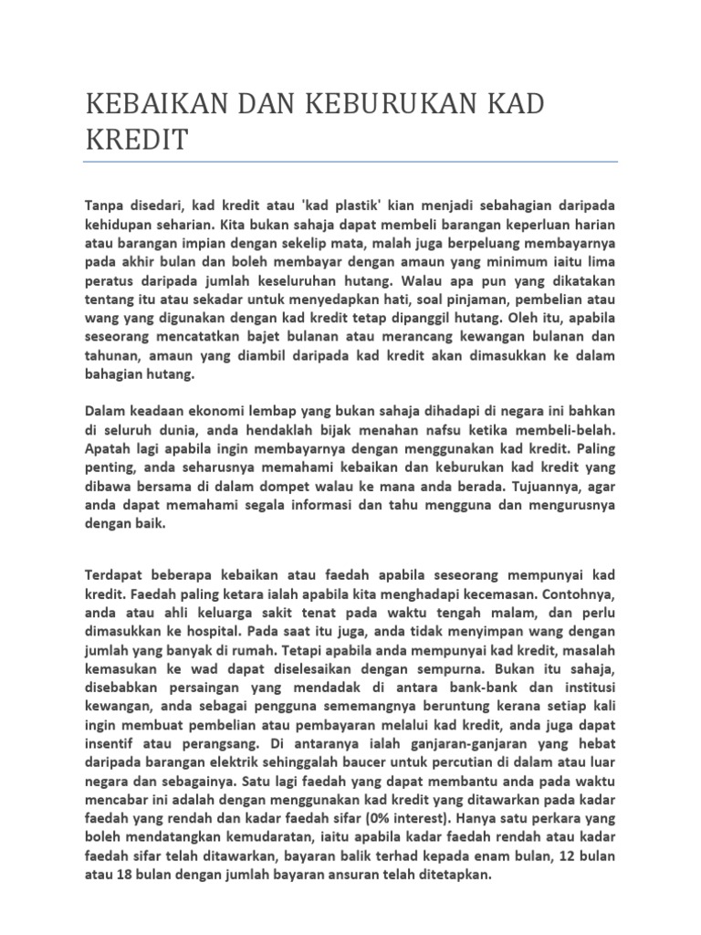 Kebaikan Dan Keburukan Kad Kredit Akpk from reader015.pdfslide.net Kad kredit klasik bank rakyat mempunyai kadar faedah sebanyak 13.5% dan ia direka khas untuk kegunaan harian. František, praha panfrantišek heute um 11:28beantragte 4000 €. Tajuk syarahan yang anda pilih ialah keburukan penggunaan kad kredit. Kad kredit memiliki kebaikan dan keburukan tersendiri. Berikut adalah senarai kad kredit di malaysia. Ini adalah salah satu keburukan penggunaan kad kredit. Apabila anda tidak membayar baki kad kredit pada tempoh yang telah ditetapkan penstrukturan ini merupakan inisiatif untuk menggalakkan pembayaran baki tertunggak kad kredit tepat pada masanya. 18 senarai bank pilihan untuk kad kredit