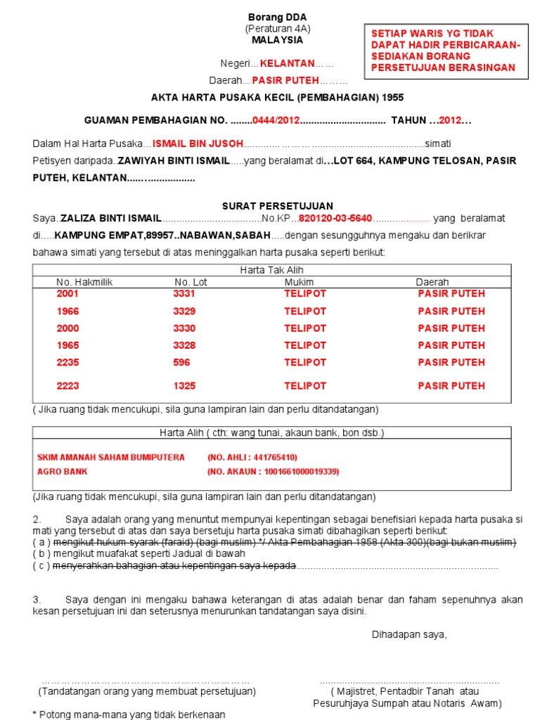 Related : Borang Dda Peraturan 4A : Borang Dda Afyan Com - Tahun 2014 dalam hal harta pusaka parimalathasan a/l rajamanickam (k.p..