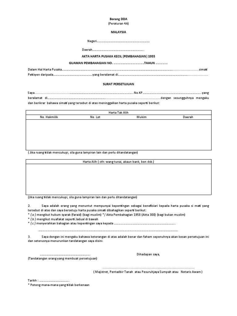 Borang Dda Peraturan 4A : Borang Dda Afyan Com - Tahun 2014 dalam hal harta pusaka parimalathasan a/l rajamanickam (k.p.. Muat turun borang penskoran standard 4 skpmg2 pembelajaran dan pemudahcaraan pdpc cikgu share fruit coloring pages education good morning quotes. (peraturan 4a) malaysia negeri daerah. Sengaja saya mengumpulkan peraturan tentang desa ini, bukan hanya untuk dipelajari oleh pemerintah desa saja, melainkan bagi masyarakat yang berkeinginan untuk mempelajarinya. Borang dda (peraturan 4a) malaysia. Panduan mengisi borang dda form dda (regulation 4a) malaysia state of wilayah persekutuan district of kuala lumpur small estates (distribution) act 1955 distribution suit no.