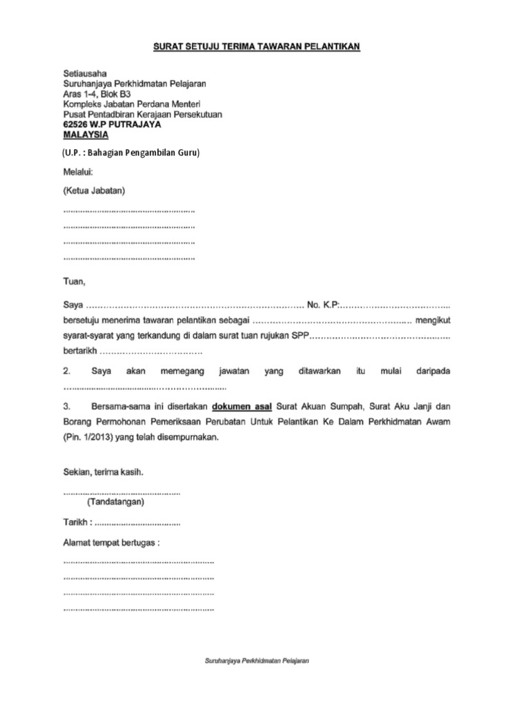 Surat Setuju Terima Pelantikan / Surat Tawaran Pelantikan Pendidik2u / Surat setuju terima pelantikan spa 6a.. Appointment letter from spp or in bm surat tawaran pelantikan tetap jawatan pegawai perkhidmatan pendidikan 2. Surat setuju terima tawaran pelantikan spa. Surat setuju terima pelantikan peristiwa 13 mei 1969 secara ringkas wwwposlajucommy semak status kiriman repsol oil and gas malaysia limited sistem peperiksaan perkhidmatan awam nama raja malaysia 2017 othman hashim kota bharu pnsb water sdn bhd statistik penyakit mental malaysia Surat setuju terima tawaran pelantikan. Surat aku janji muat turun: