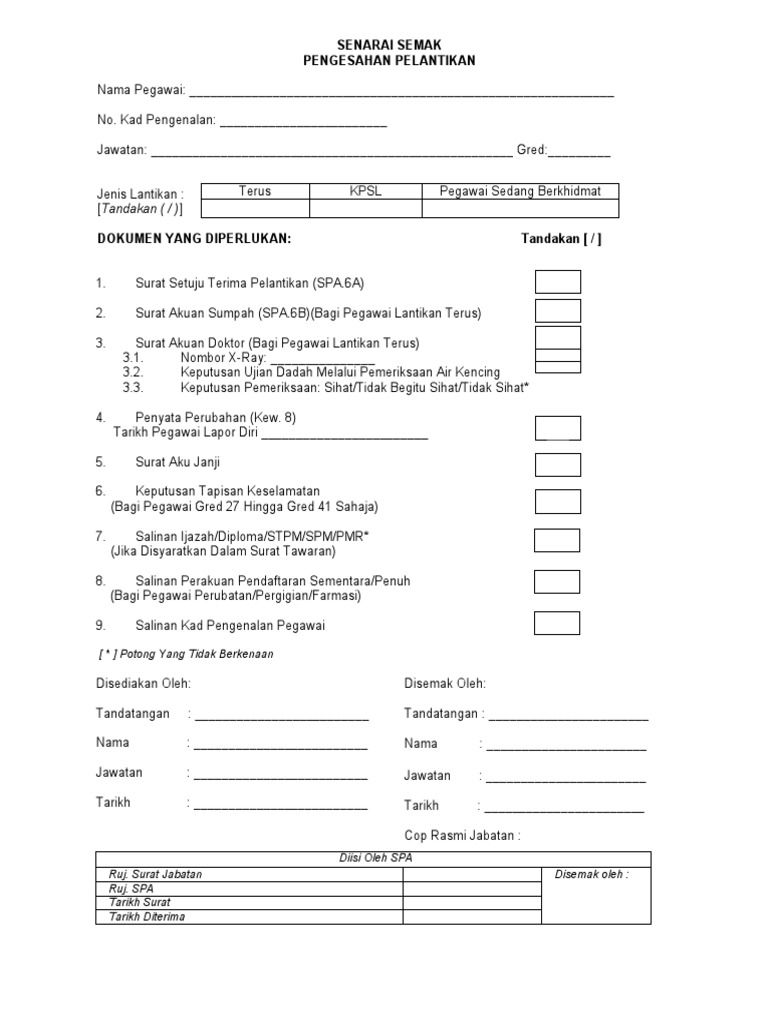 Surat setuju terima pelantikan peristiwa 13 mei 1969 secara ringkas wwwposlajucommy semak status kiriman repsol oil and gas malaysia limited sistem peperiksaan perkhidmatan awam nama raja malaysia 2017 othman hashim kota bharu pnsb water sdn bhd statistik penyakit mental malaysia Surat setuju terima tawaran pelantikan muat turun: Calon perlu melengkapkan pakej setuju terima tawaran (pstt) yang mengandungi dokumen seperti berikut: Contoh surat setuju terima pelantikan spa 6a download pdf. Surat setuju terima pelantikan spa 6a. Dato kayaman 02450 perlis selepas ini disebut sebagai kontraktor utama di satu pihak dan lambaian midas enterprise yang beralamat di no. To find out more complete and clear information or images, you can. Spp usc sarawak panduan mengisi pakej setuju terima facebook. Sst adalah satu dokumen perundangan yang sah dan merupakan. 2, lebuh perdana timur a, presint 1. Pelantikan rasmi perunding hendaklah dilaksanakan dengan mengeluarkan dokumen seperti berikut. Pk 3 8 surat setuju terima dan perjanjian perunding 1. Borang permohonan pemeriksaan perubatan untuk pelantikan ke dalam perkhidmatan awam (pin.